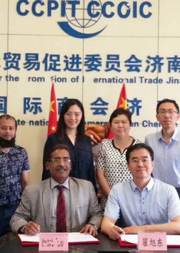 2017年6月27日,孟加拉國工商聯合會董事Runu先生和Raz先生來到我公司考察訪問,對我公司的工廠規模和專業程度贊嘆有加。當即和金格瑞簽訂了在孟加拉國合作的MOU備忘錄。同時,在我公司外貿部門的介紹下,和中國國家貿促會濟南分會簽訂了商會之間的友好合作備忘錄。